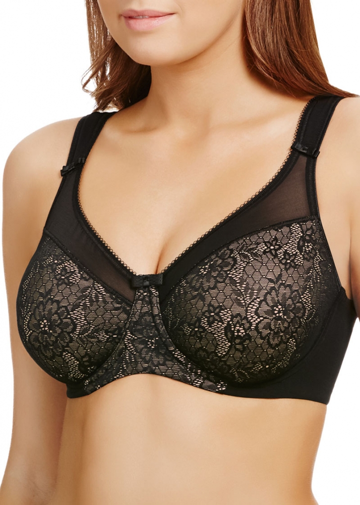Beauty minimizer bh från Berlie. En bh som ger dig ett underbart stöd och som omfamnar hela bysten. Minimizer bh:n är sydd i ett skönt microfibertyg med en svart bas och en vacker spets som pryder hela bh:kupan.